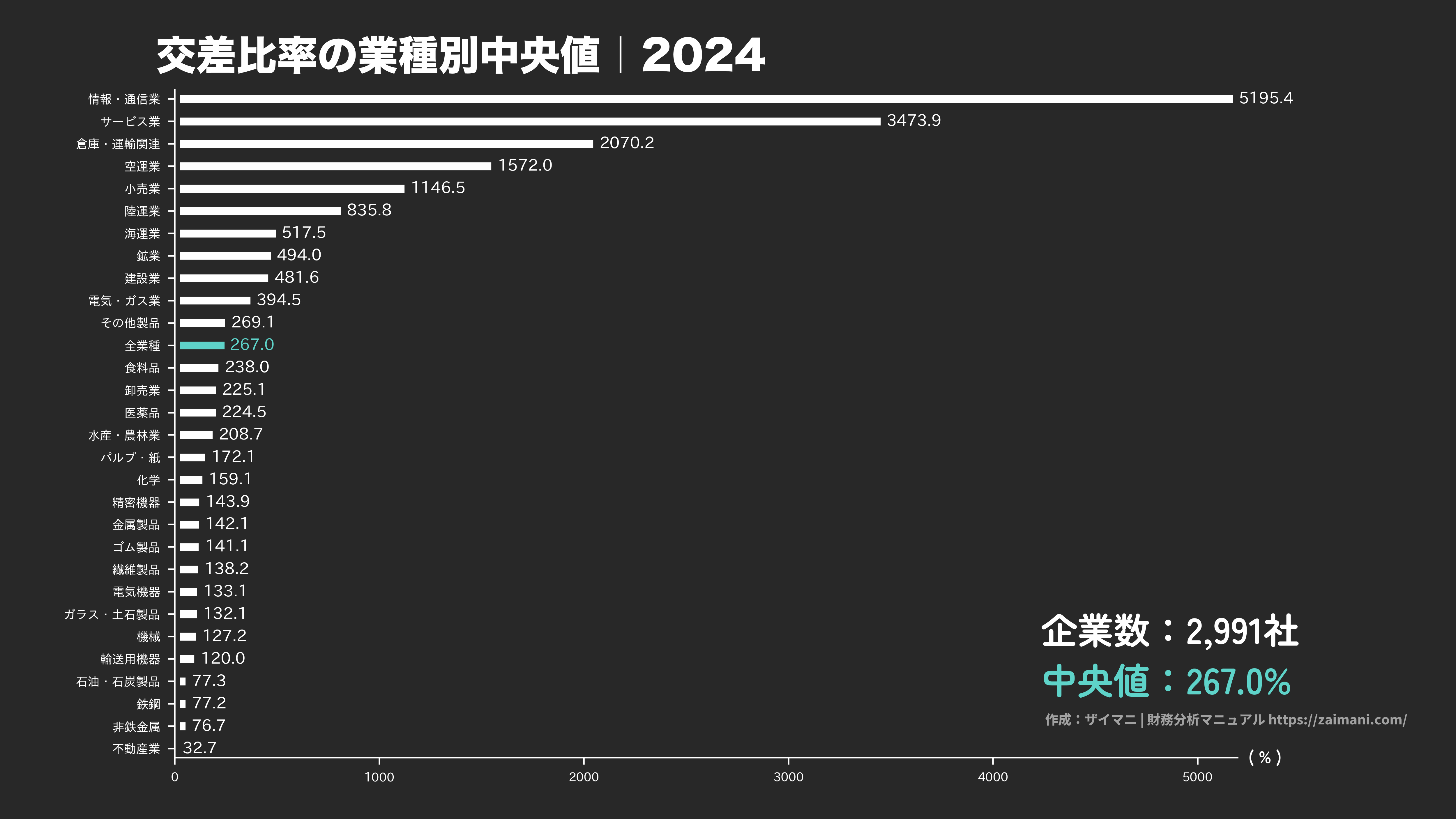 2025年3月末までに提出された各上場企業の有価証券報告書をもとに算出しています。2025年4月以降の決算書を含む、最新の財務データセットを活用して分析したい方にはザイマニ財務分析ゼミへの参加がおすすめ。データセットに加えて、財務分析レポートや財務分析ツール(Excel・Python)など多様なコンテンツをゼミメンバー限定で共有しています→