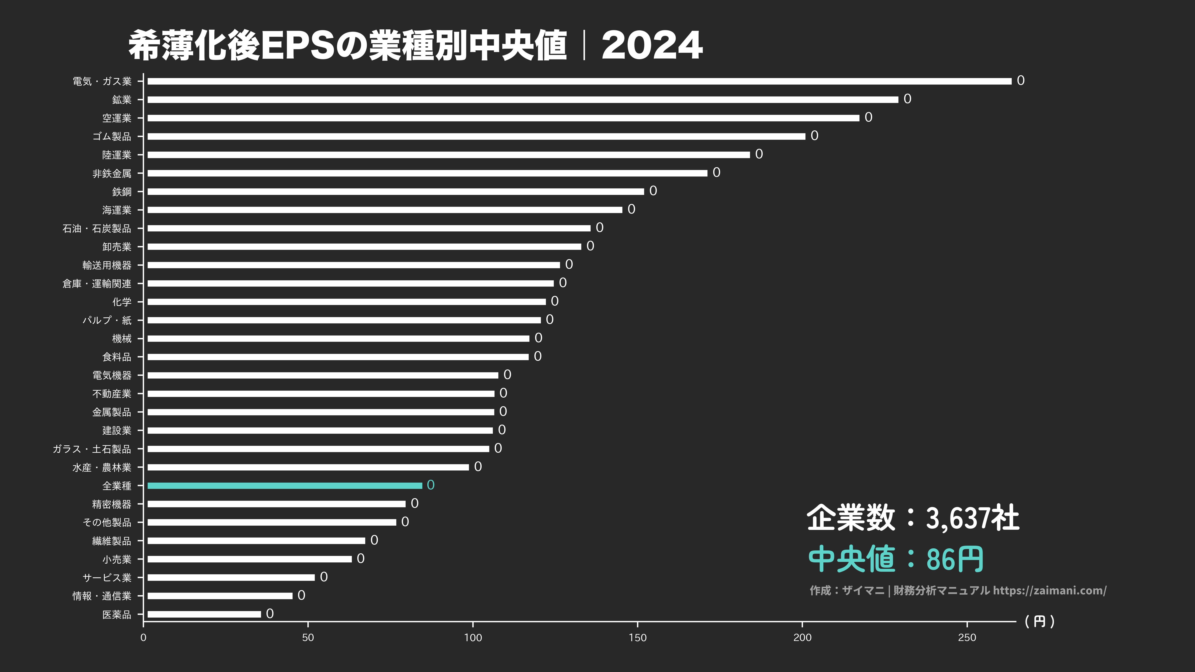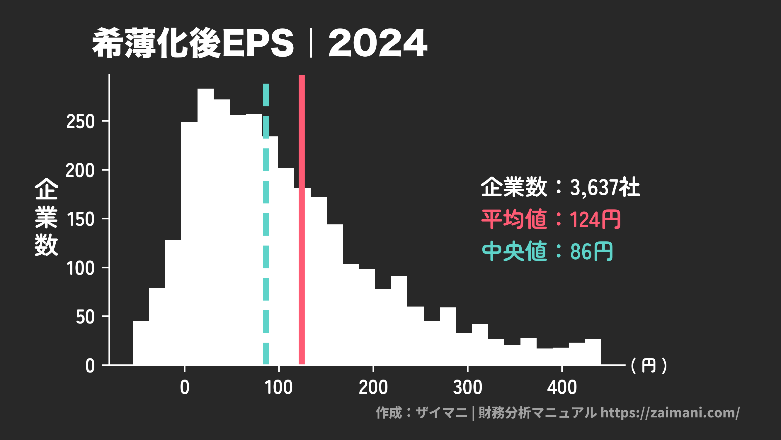 希薄化後EPS | 潜在株式調整後1株当たり当期純利益の全業種平均・目安