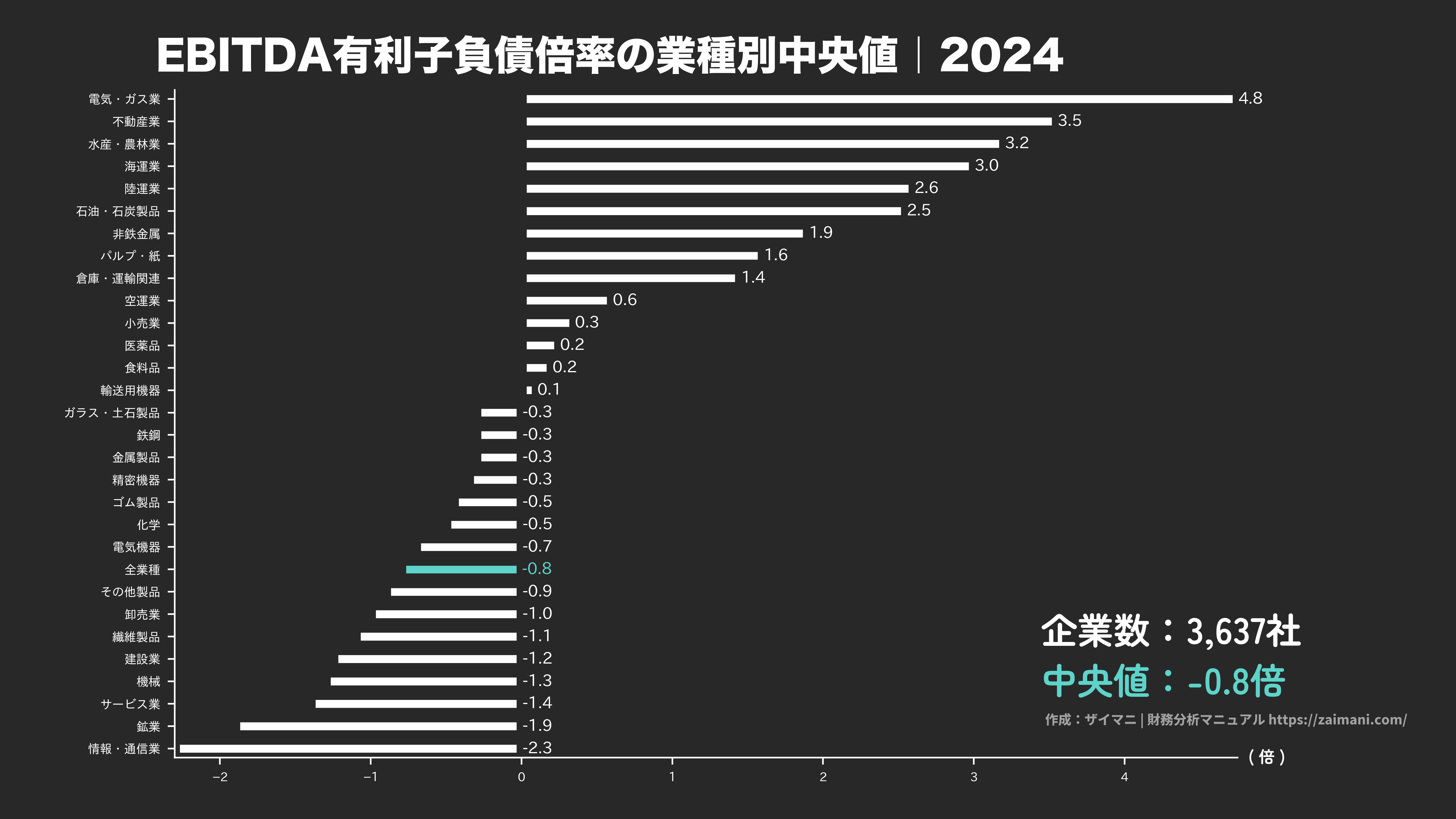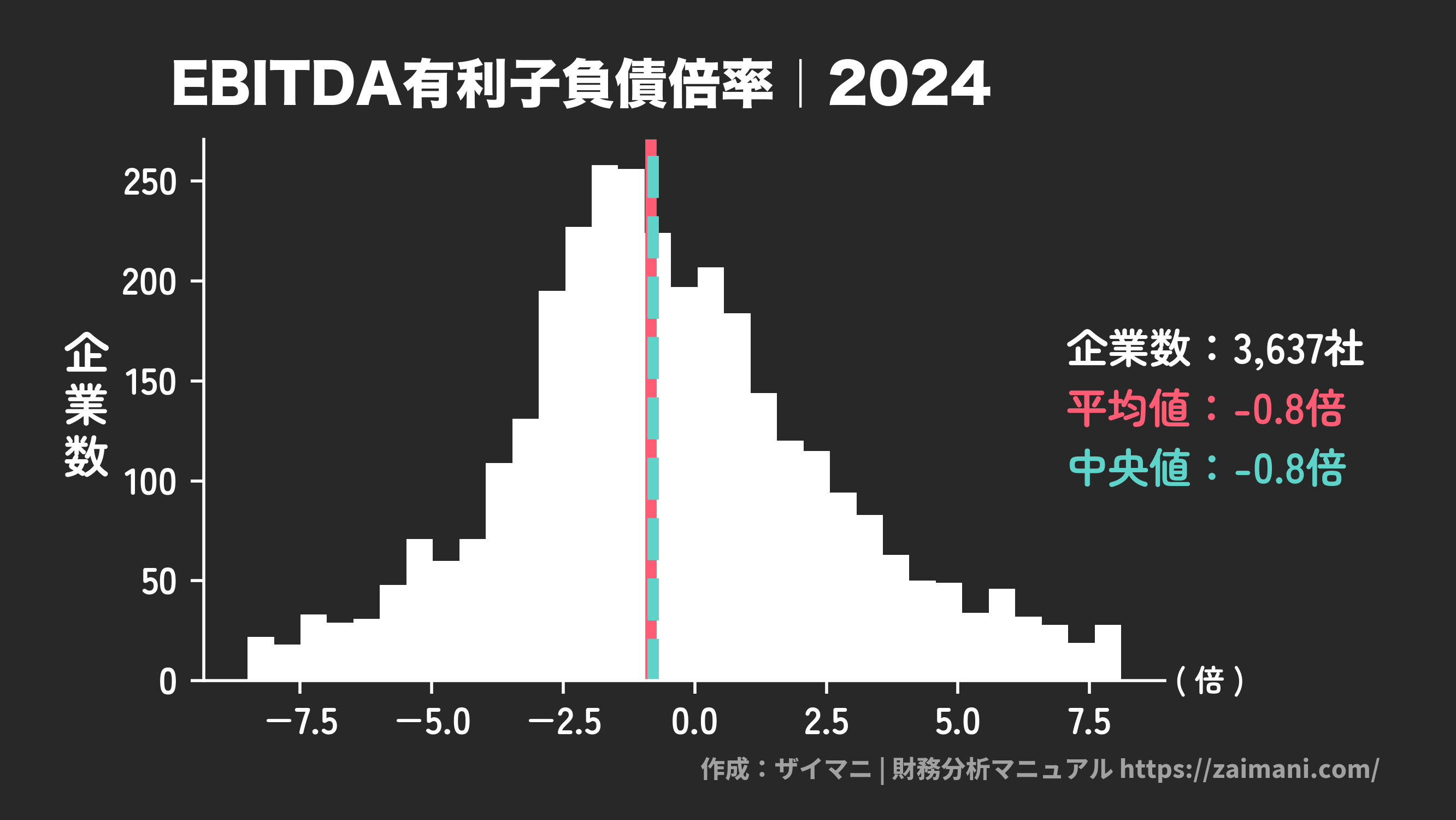 EBITDA有利子負債倍率の中央値