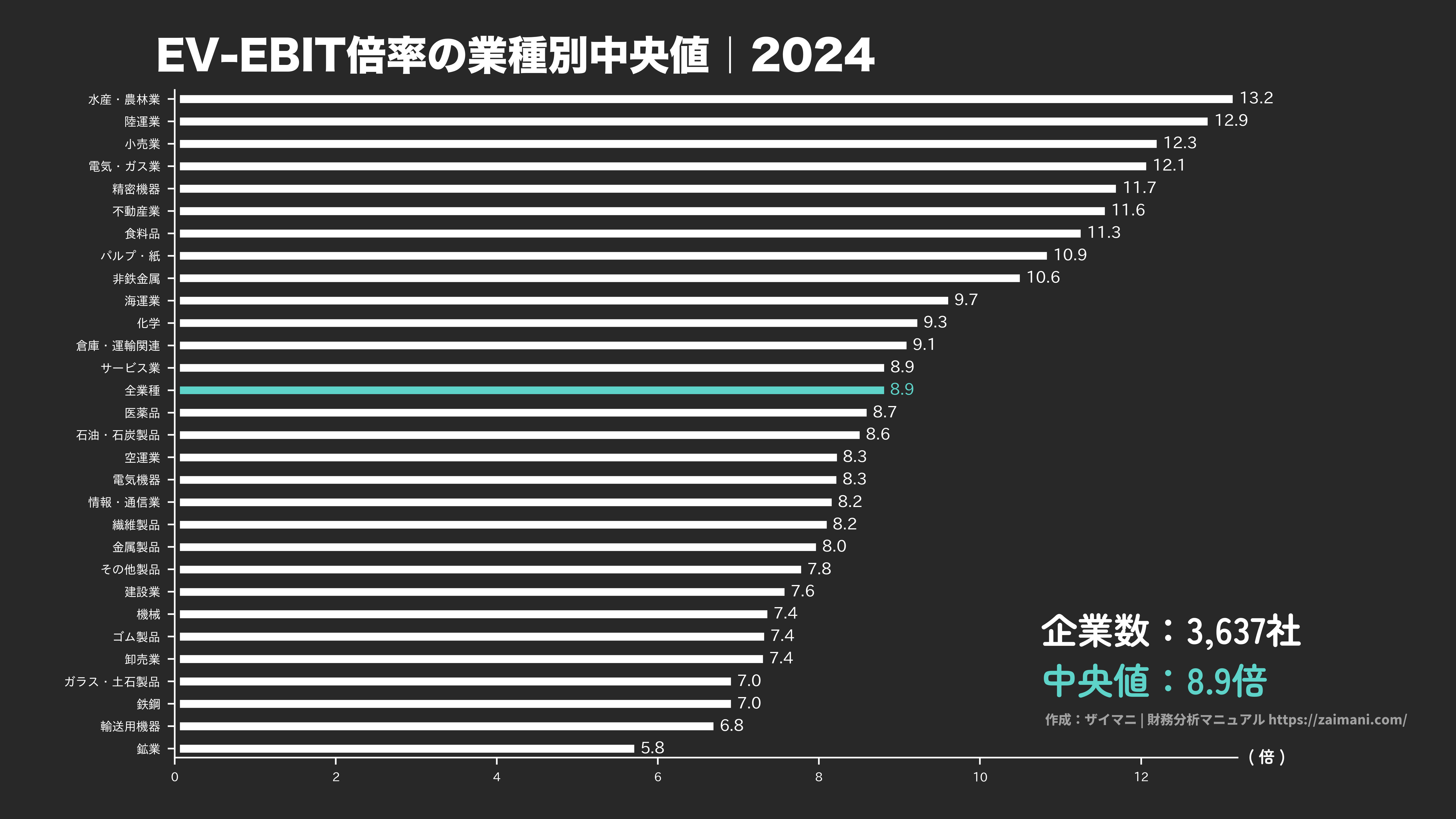 EV/EBIT倍率 | 営業利益倍率の全業種平均・目安