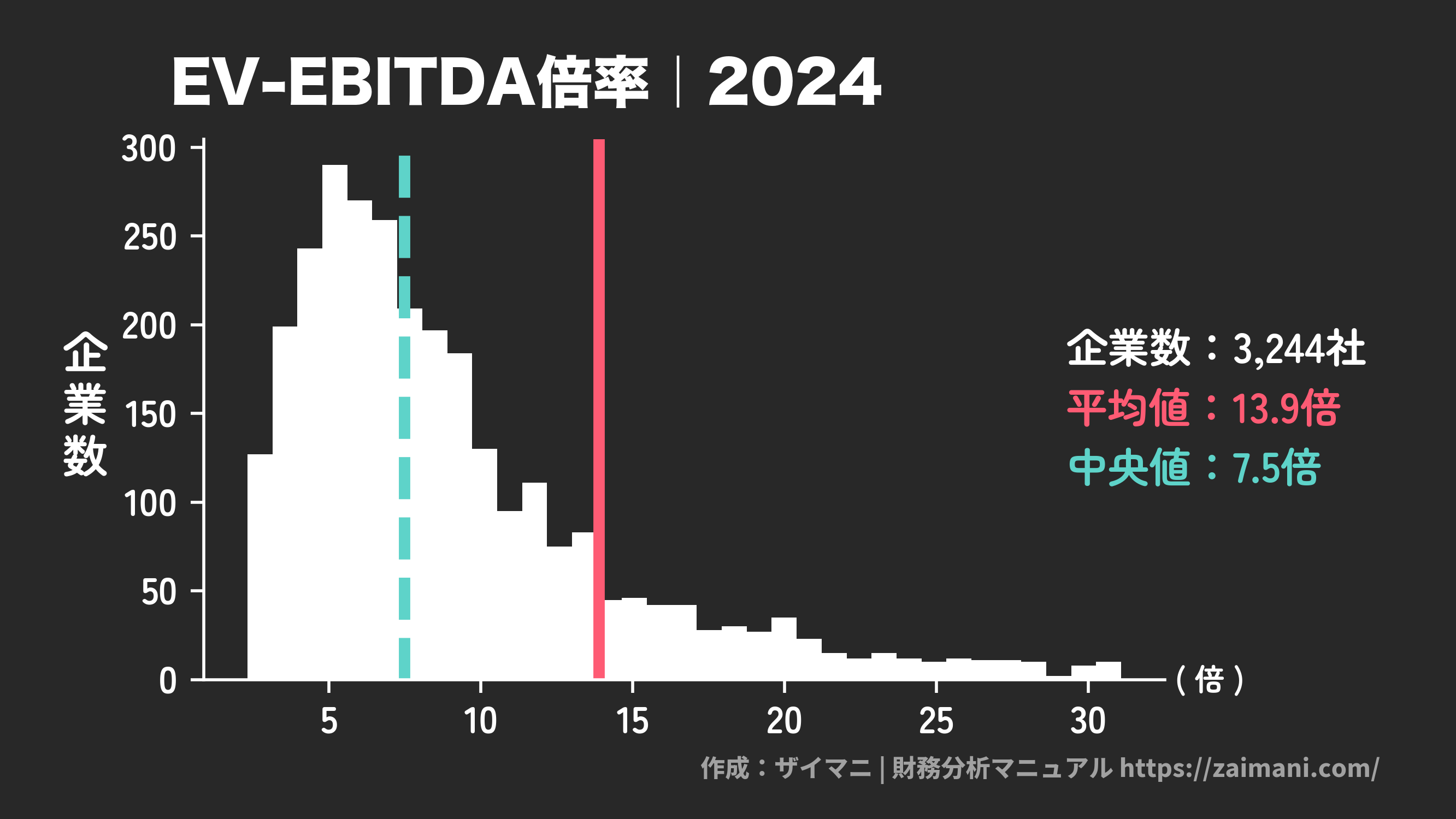 EV/EBITDA倍率(2024)の全業種平均・中央値
