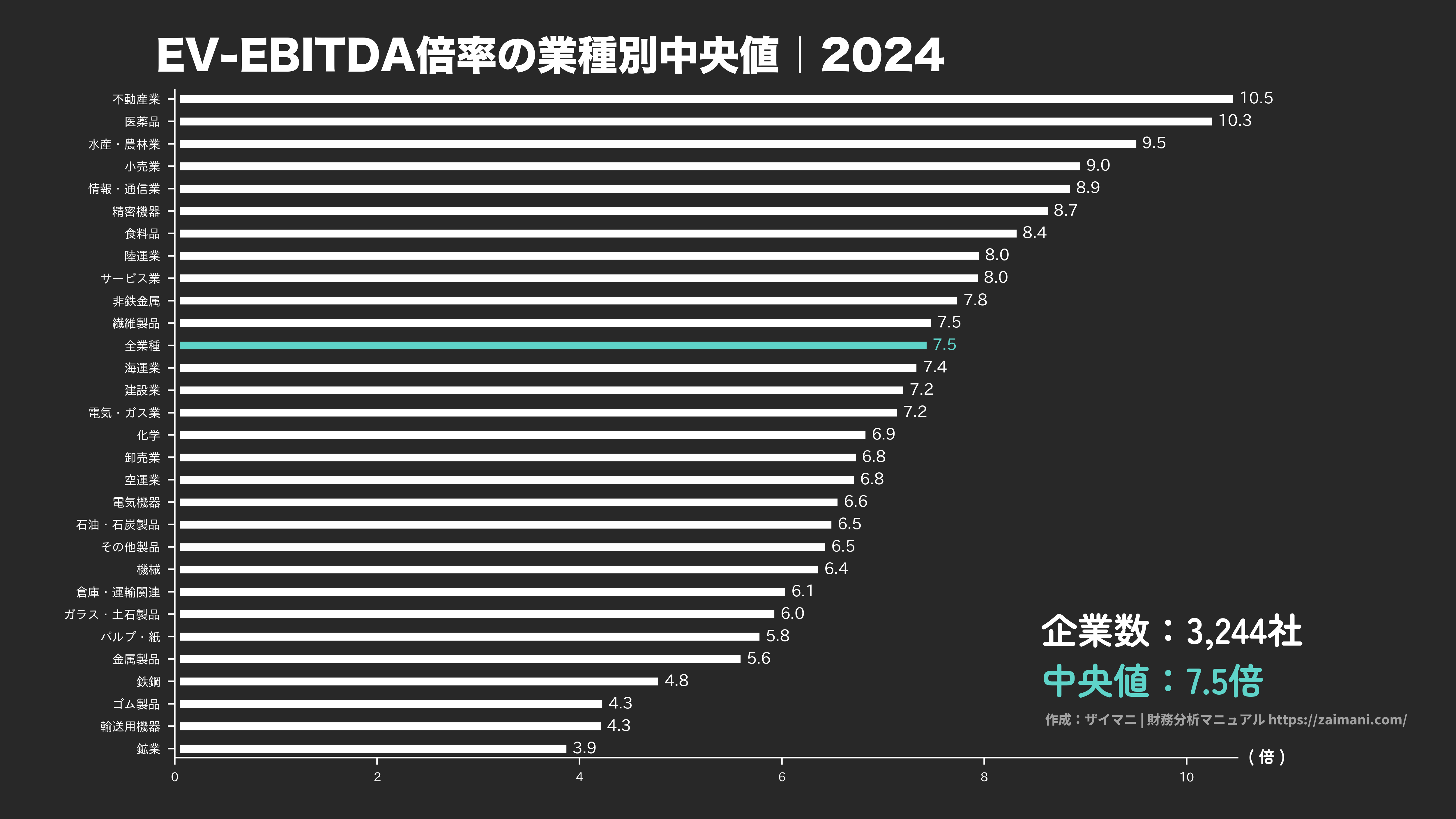 EV/EBITDA倍率の目安(全業種中央値 2024)