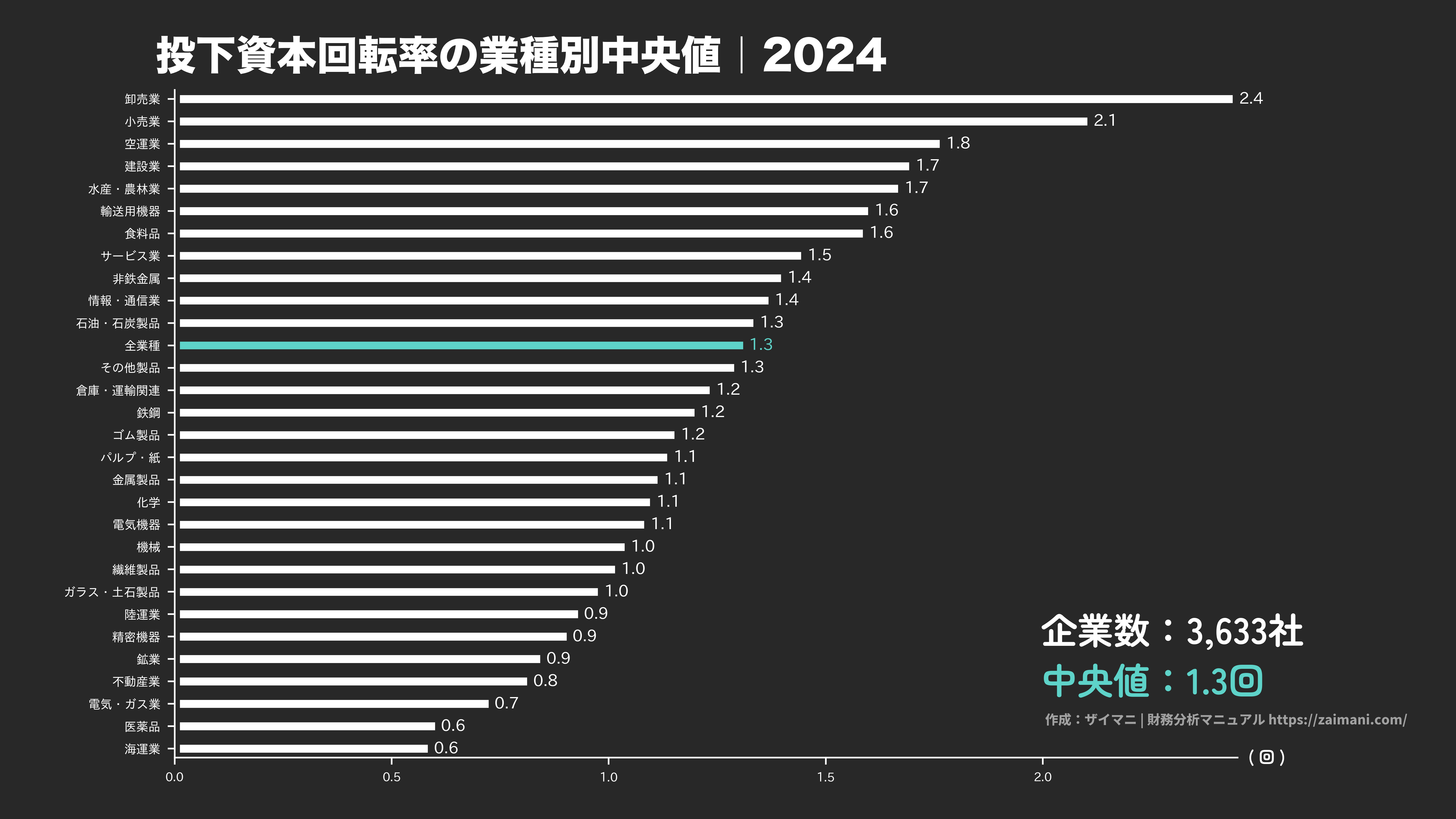 投下資本回転率の中央値