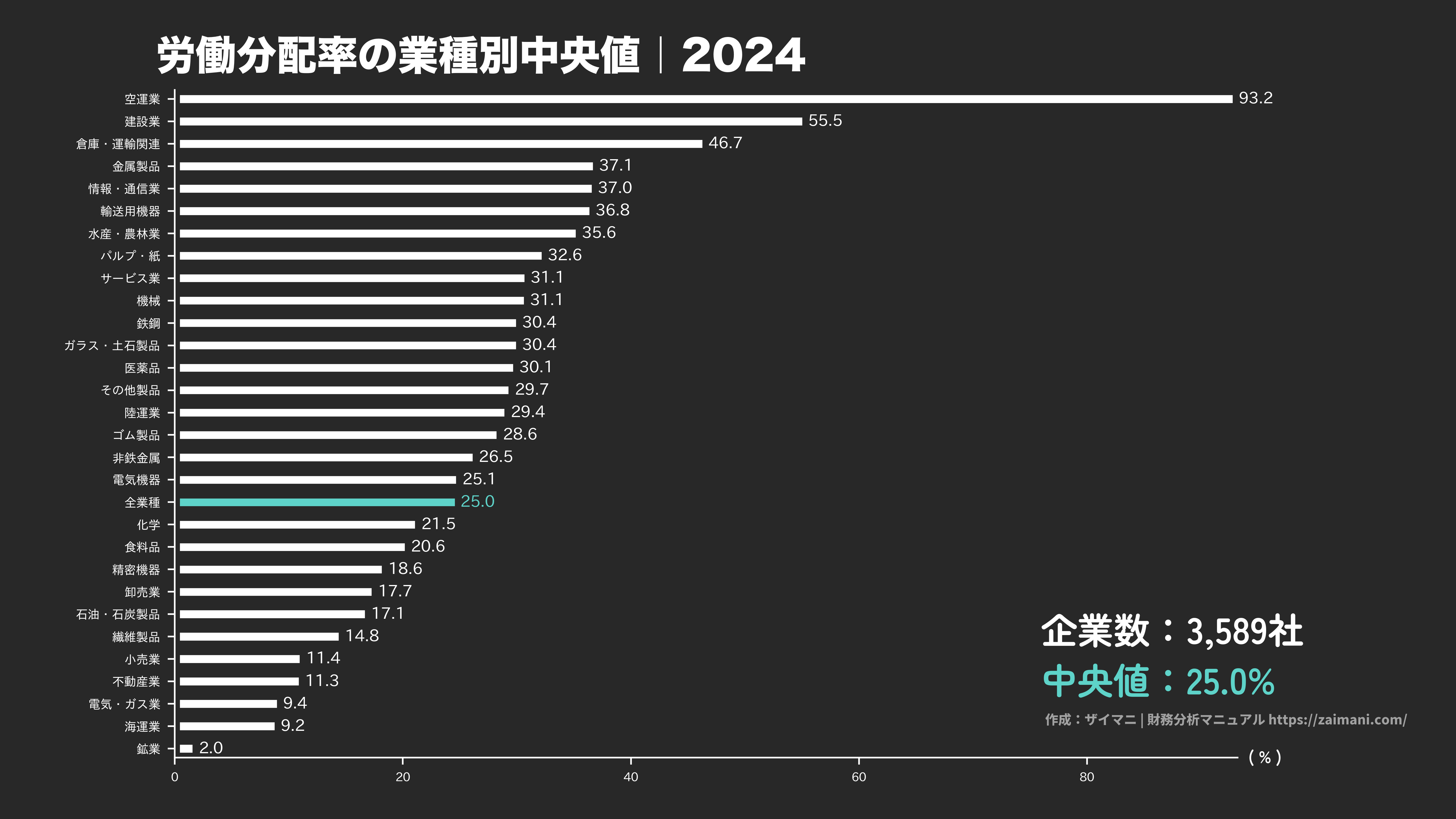 2025年3月末までに提出された各上場企業の有価証券報告書をもとに算出しています。2025年4月以降の決算書を含む、最新の財務データセットを活用して分析したい方にはザイマニ財務分析ゼミへの参加がおすすめ。データセットに加えて、財務分析レポートや財務分析ツール(Excel・Python)など多様なコンテンツをゼミメンバー限定で共有しています→