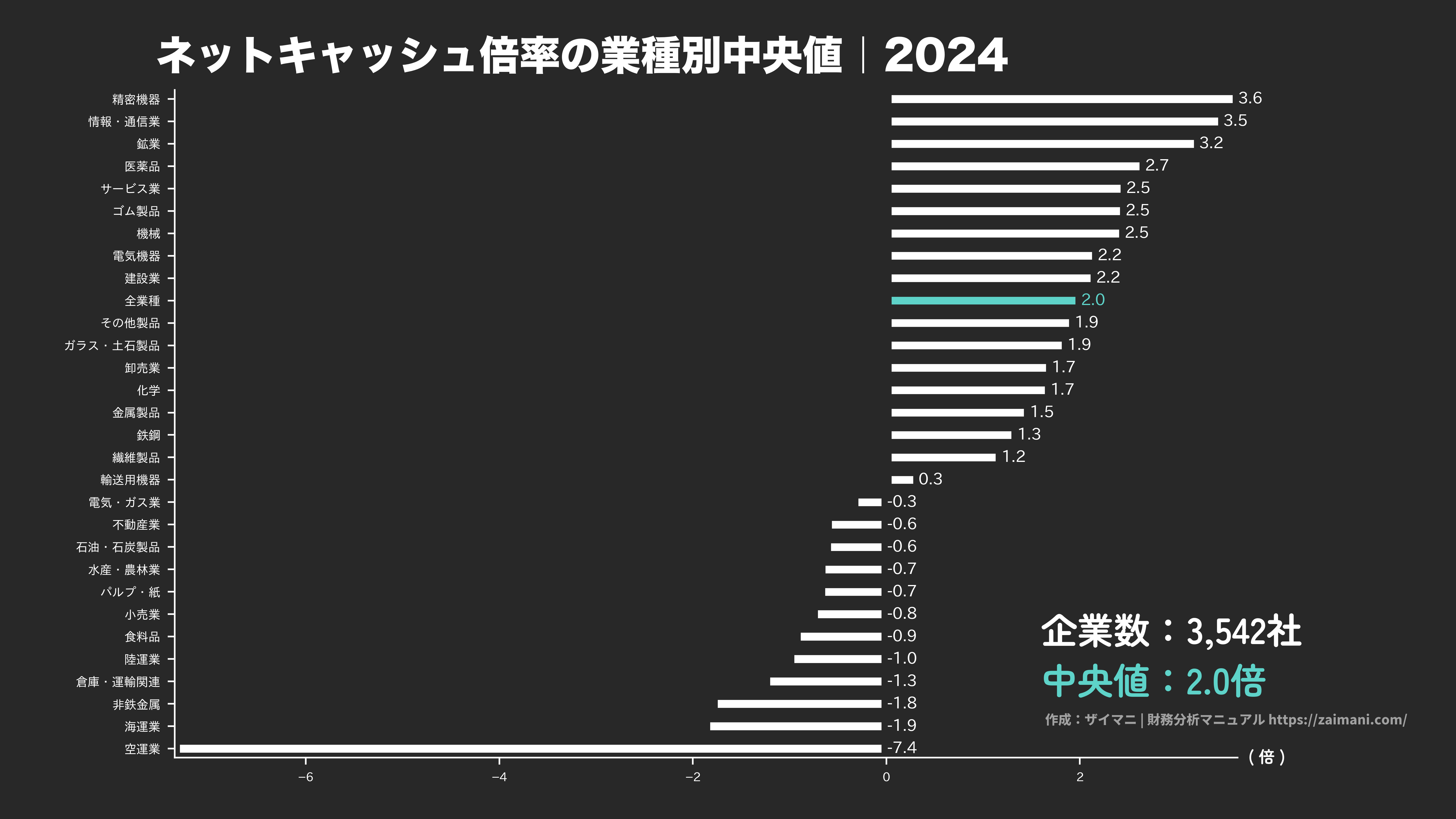 ネットキャッシュ倍率の全業種平均・目安