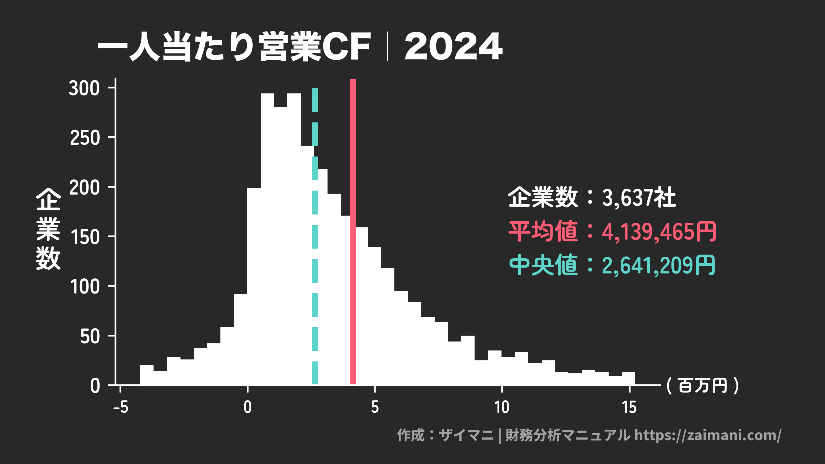 | 計算式 | 一人当たり営業CF(円) = 営業CF ÷ 従業員数 |