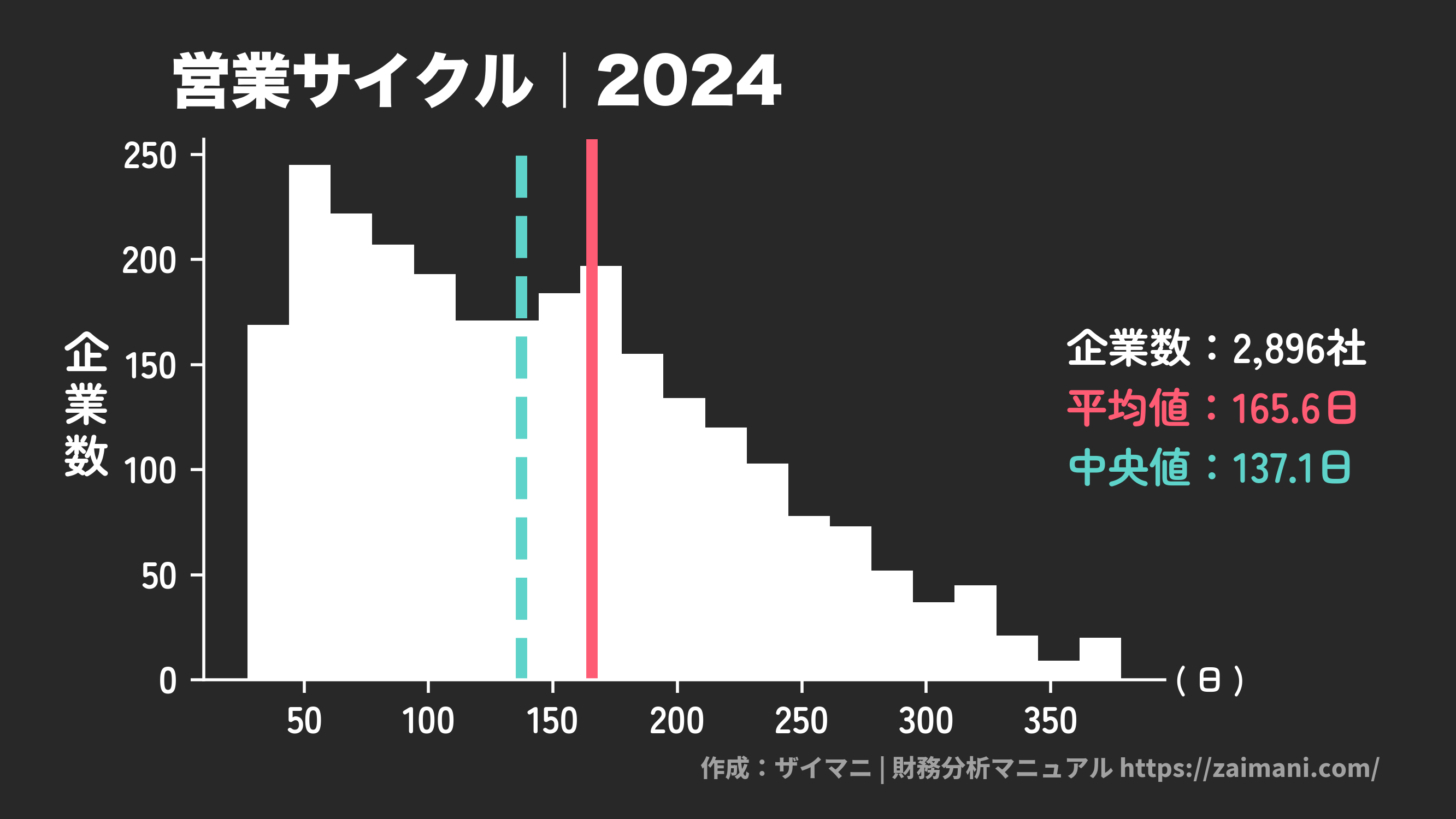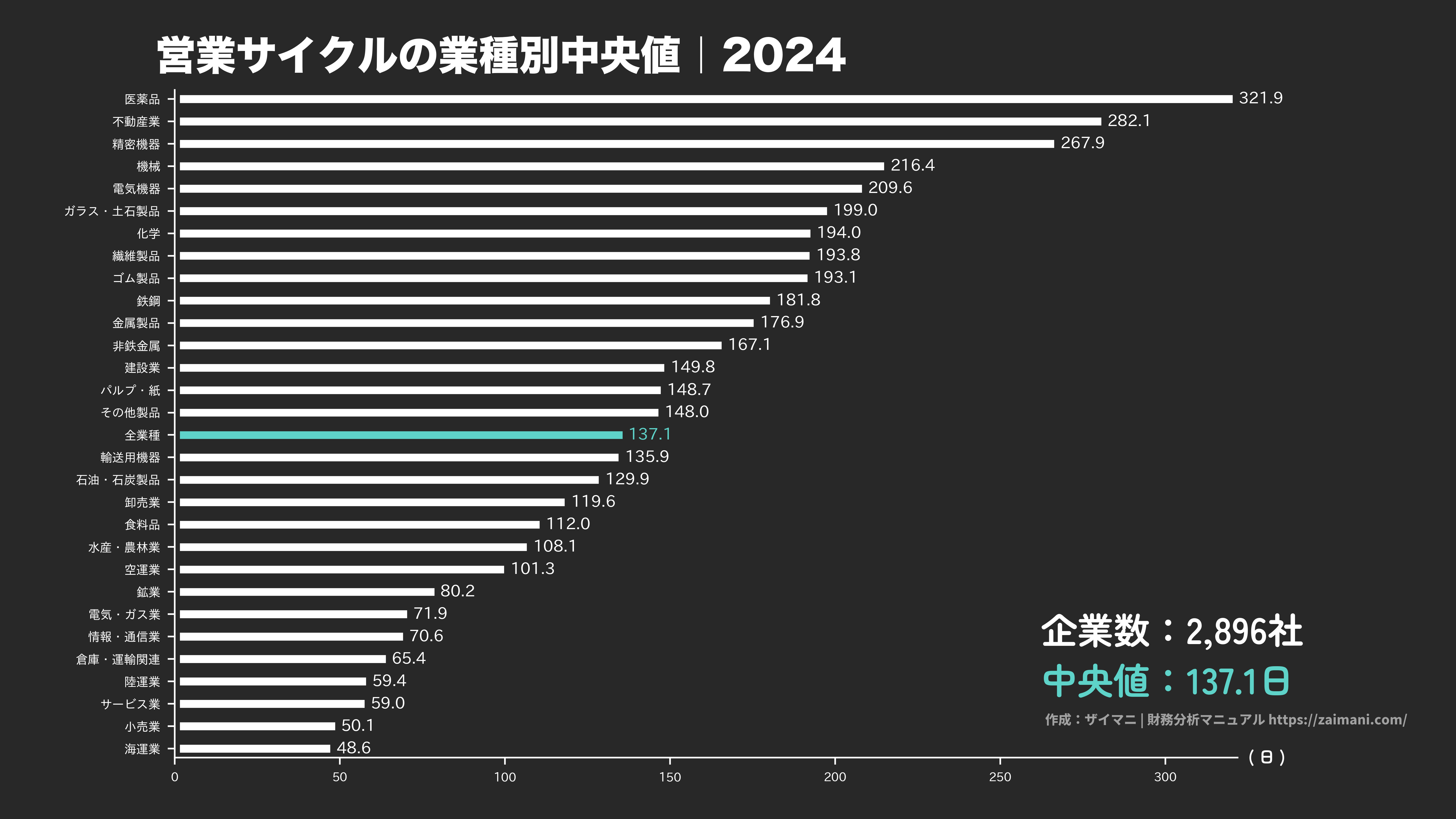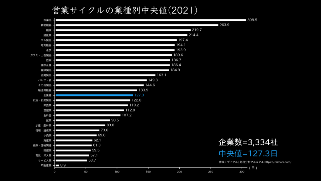 営業サイクル(2024)の全業種平均・中央値