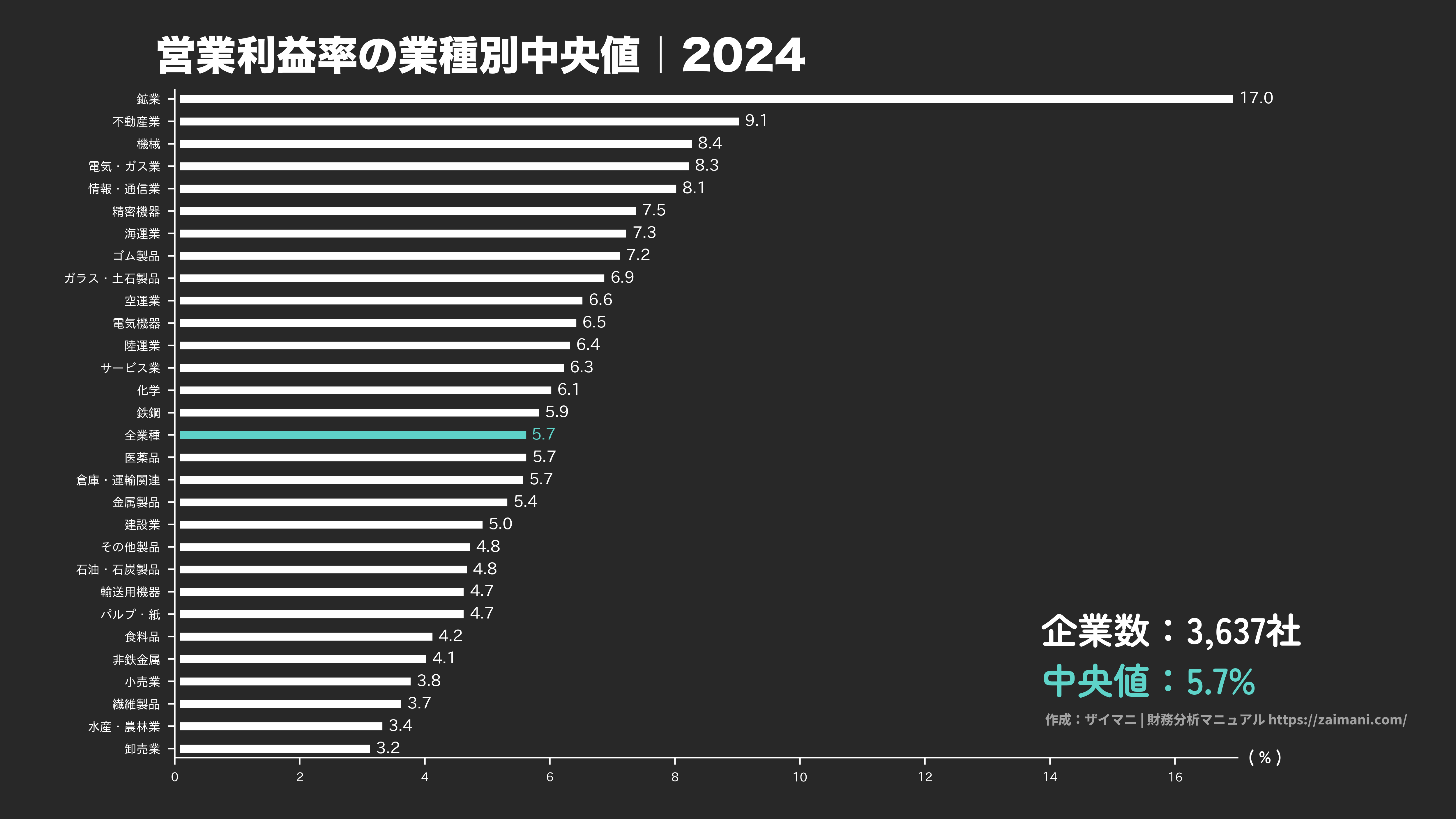 2025年3月末までに提出された各上場企業の有価証券報告書をもとに算出しています。2025年4月以降の決算書を含む、最新の財務データセットを活用して分析したい方にはザイマニ財務分析ゼミへの参加がおすすめ。データセットに加えて、財務分析レポートや財務分析ツール(Excel・Python)など多様なコンテンツをゼミメンバー限定で共有しています→