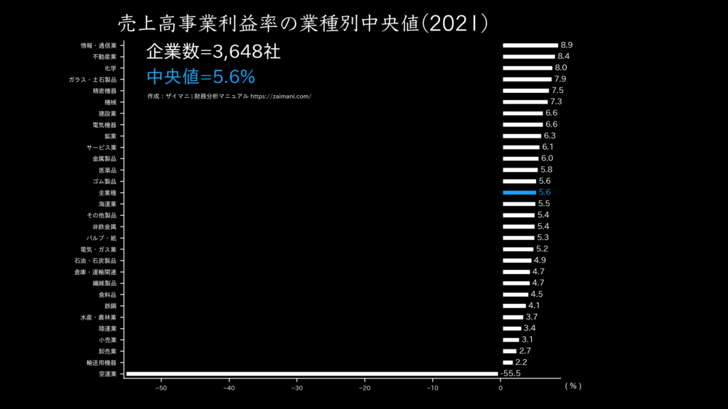 売上高事業利益率の中央値
