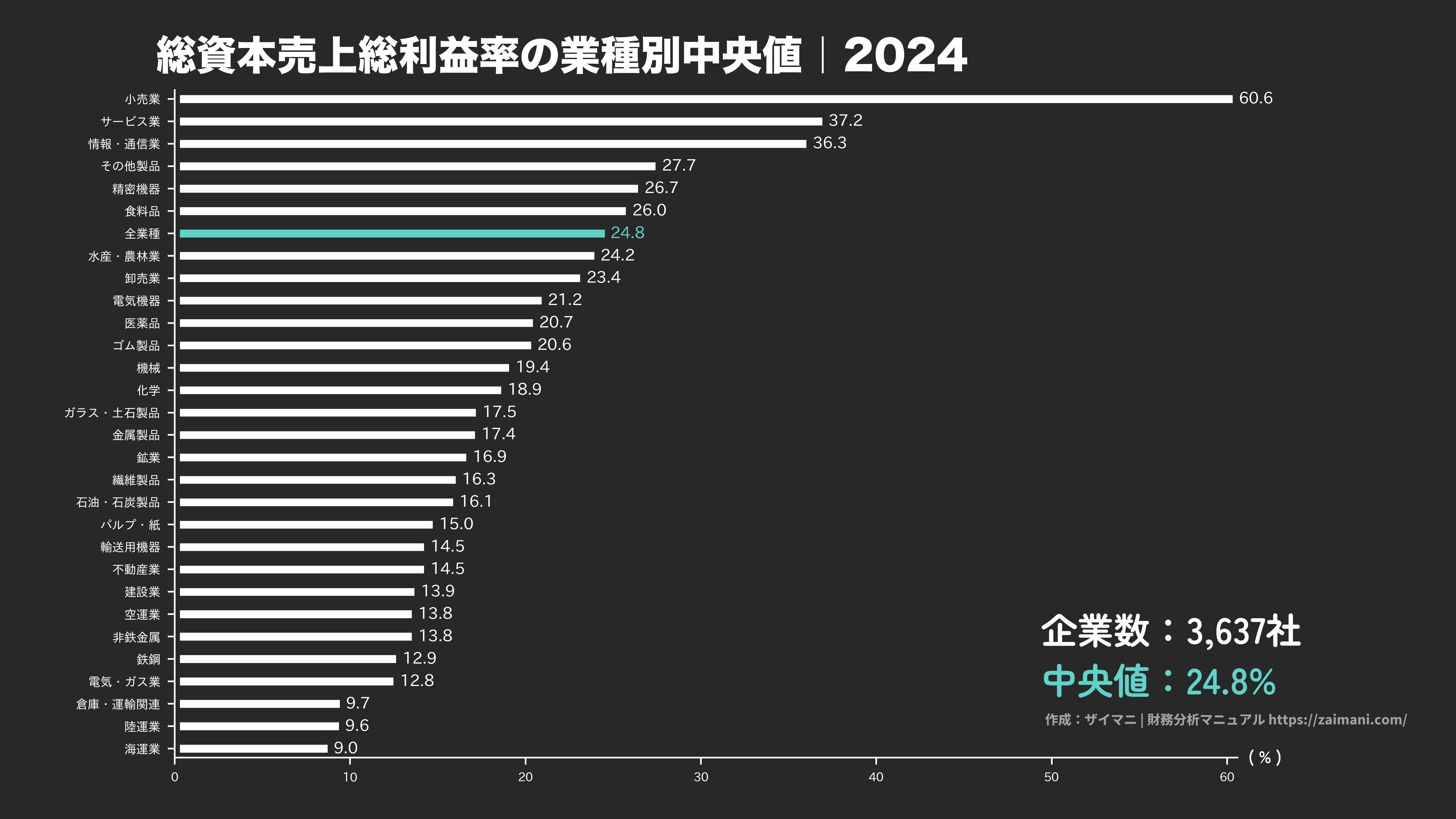 総資本売上総利益率の中央値